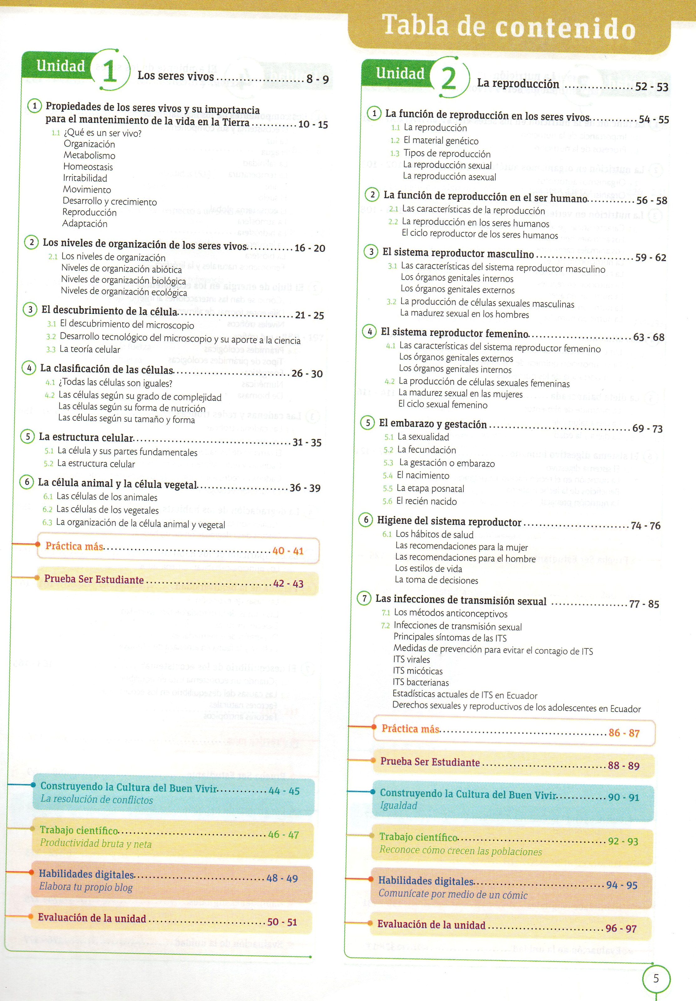 TÃtulo : BiologÃa Viva 2 Bachillerato Tipo de documento: texto impreso Autores: MarÃa Isabel Aguinaga BuendÃa, Autor ; Carolina Munchmeyer Castro, Autor Editorial: Grupo Editorial Norma S.A. Fecha de publicación: 2013 Número de páginas: 224 p Il.: il. Dimensiones: 28x21cm ISBN/ISSN/DL: 978-9978-54-994-0 Nota general: Incluye: Evaluación diagnóstica, Evaluación quimestral, Prueba Saber, Solucionario, Laboratorio, Proyecto, Bibliografía. Idioma : Español Clasificación: BiologÃa Palabras clave: Agua, Célula, Nutrición, Cuerpo humano. Clasificación: 570 Ciencias de la vida Biología Nota de contenido: El agua y los bioelementos en los seres vivos.-- Función de las biomolécular.-- ¿Qué tipos de células existen?.-- Leyes de la termodinámica y procesos metabólicos.-- Flujo de materia y energía en el nivel del productor y del consumidor.-- Desarrollo embrionario.-- Relaciones de los procesos de organismos superiores.-- Sistemas del cuerpo humano. Link: https://catalogo.bibliolatino.com/uemo/opac_css/index.php?lvl=notice_display&id= Reserva