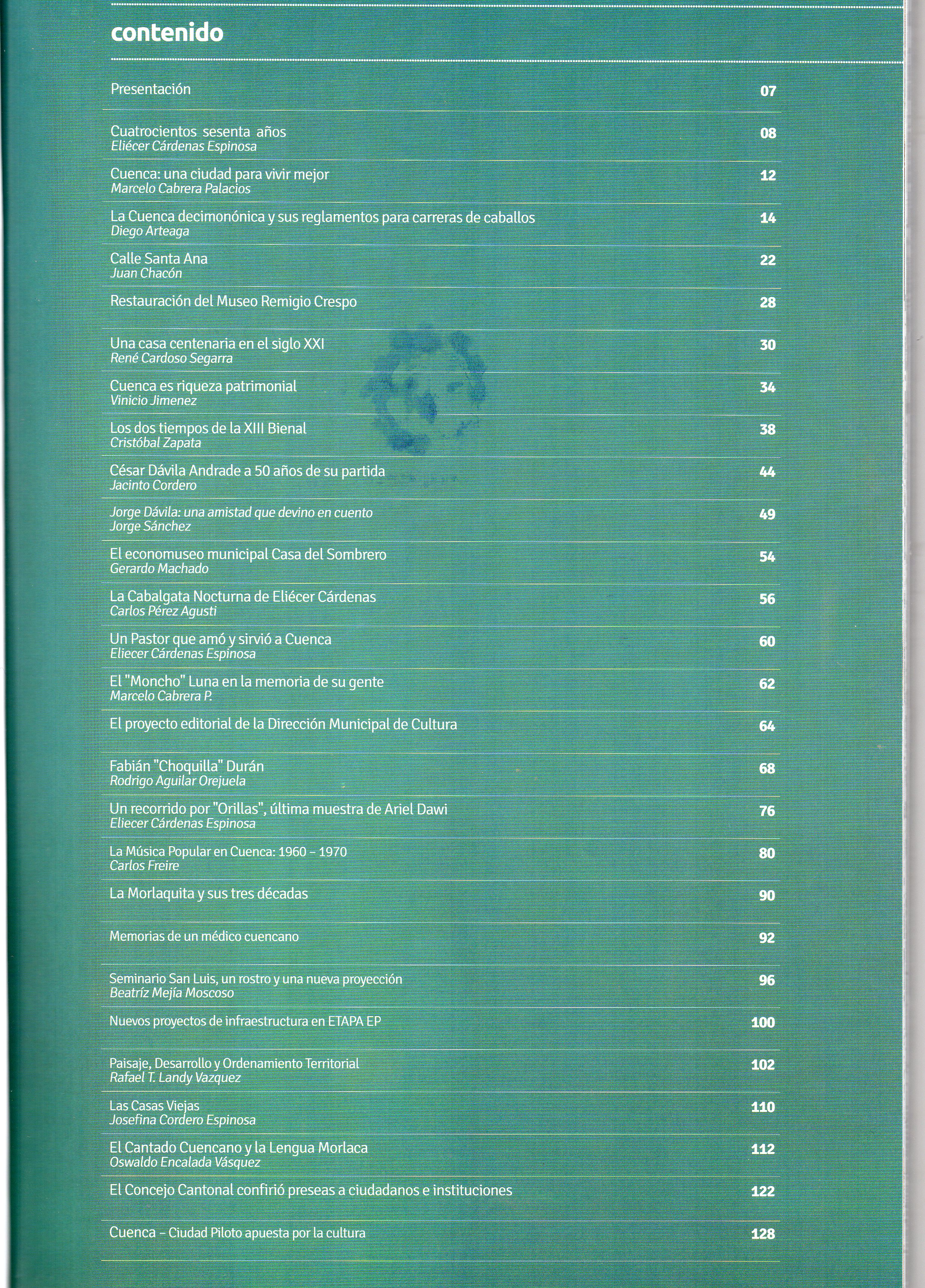 PermalinkGuÃa conmemorativa Cuenca. 450 años de fundación / Xavier Muñoz Chavez / Dirección Cultura del GAD Municipal de Cuenca (2007)