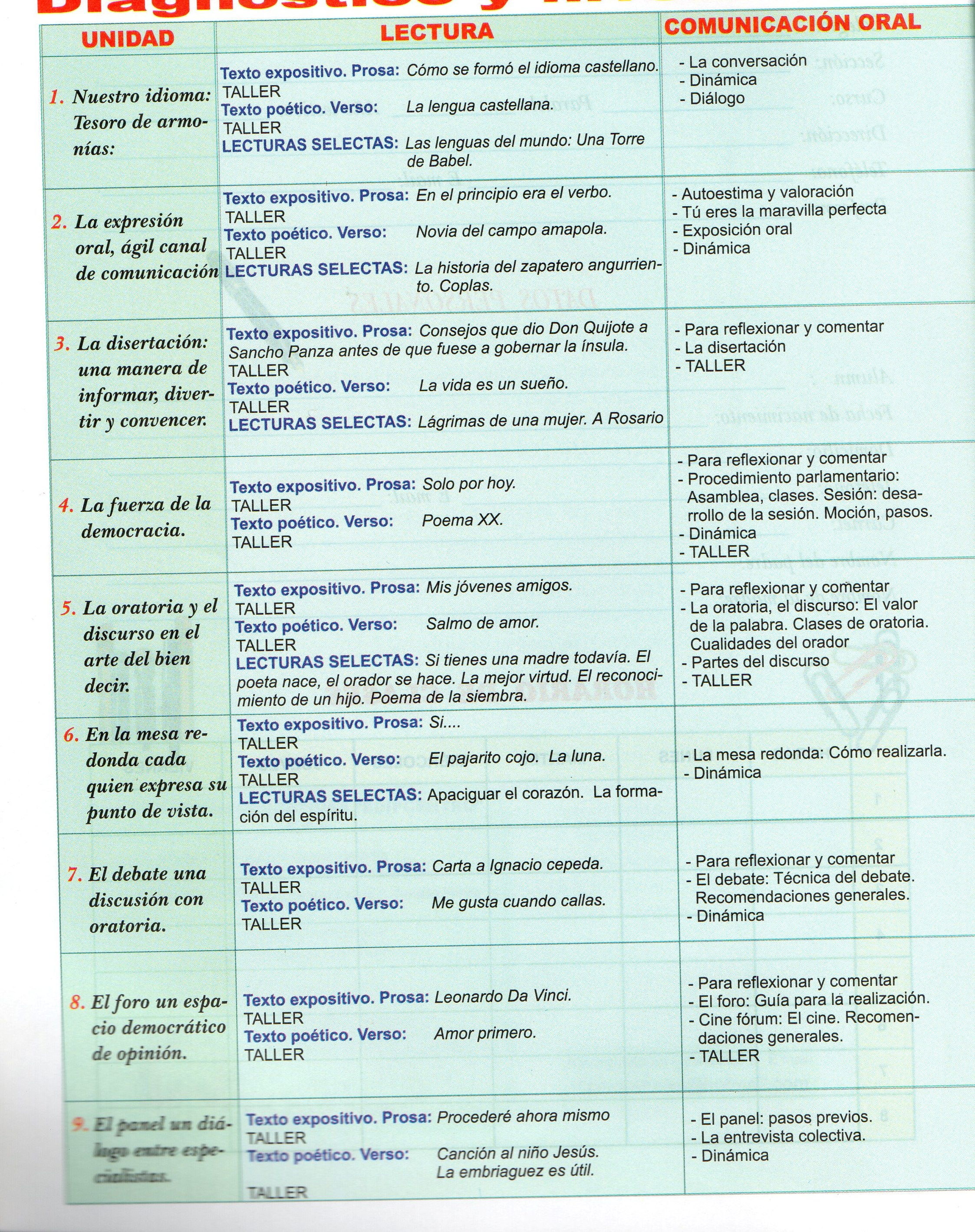 TÃtulo : Lenguaje Total 10 Tipo de documento: texto impreso Autores: Manuel Freire Heredia, Autor Editorial: Riobamba : Edipcentro Fecha de publicación: 2005 Número de páginas: 200 p. Il.: il. Dimensiones: 27x20.5 cm Nota general: Incluye: Contenido, Diagnóstico y nivelación, Talleres, Evaluación. Clasificación: LinguÃstica Palabras clave: TEXTO DE LENGUAJE, CONVERSACION, DIALOGO, ORATORIA, DEBATE, ORACION. Clasificación: 410 Linguística Nota de contenido: La oración gramatical.-- Proposiciones.-- Concordancia.-- Prefijos.-- Sufijos.-- Lenguaje literario.-- Literatura.-- Elementos de la obra literaria.-- Versificación.-- La estrofa.-- Figuras o recursos literarios.-- Géneros literarios. Link: https://catalogo.bibliolatino.com/uemo/opac_css/index.php?lvl=notice_display&id= Reserva
