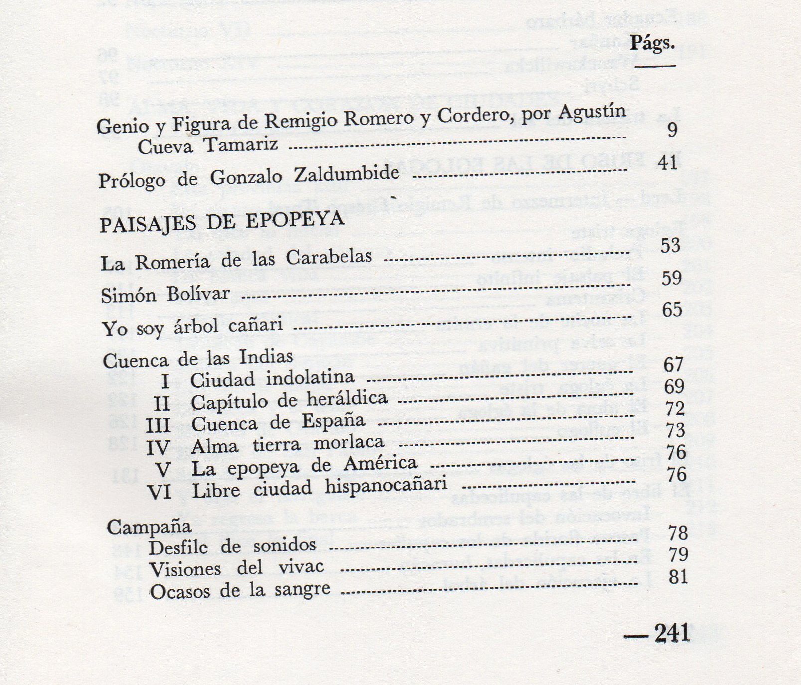 TÃtulo : La romerÃa de las carabelas Tipo de documento: texto impreso Autores: Remigio Romero y Cordero, Autor Editorial: Cuenca : Casa de la Cultura Ecuatoriana Fecha de publicación: 1968 Número de páginas: 244 p Dimensiones: 22x16 cm Nota general: Incluye: Indice Idioma : Español Clasificación: Literatura Ecuador Palabras clave: POESIA ECUATORIANA, LITERATURA, POETAS CUENCANOS. Clasificación: 860.1 Literatura. Poesía Nota de contenido: Paisajes de epopeya.-- El friso de las eglogas.-- De los nocturnos.-- Alma, vida y corazón de campos y ciudades.-- Sonetario policromo. Link: https://catalogo.bibliolatino.com/uemo/opac_css/index.php?lvl=notice_display&id= Reserva