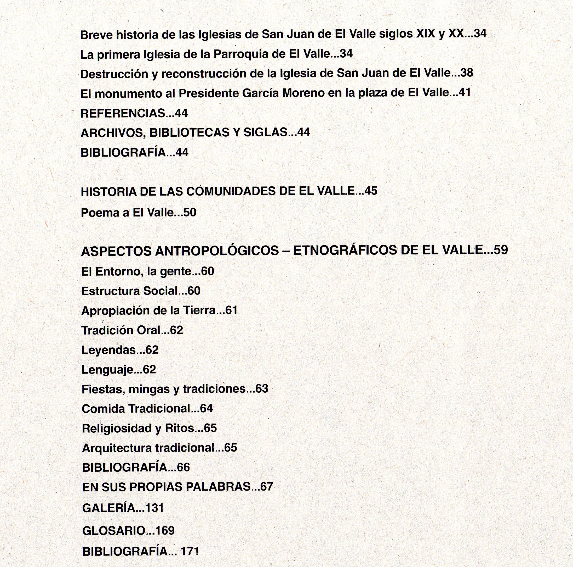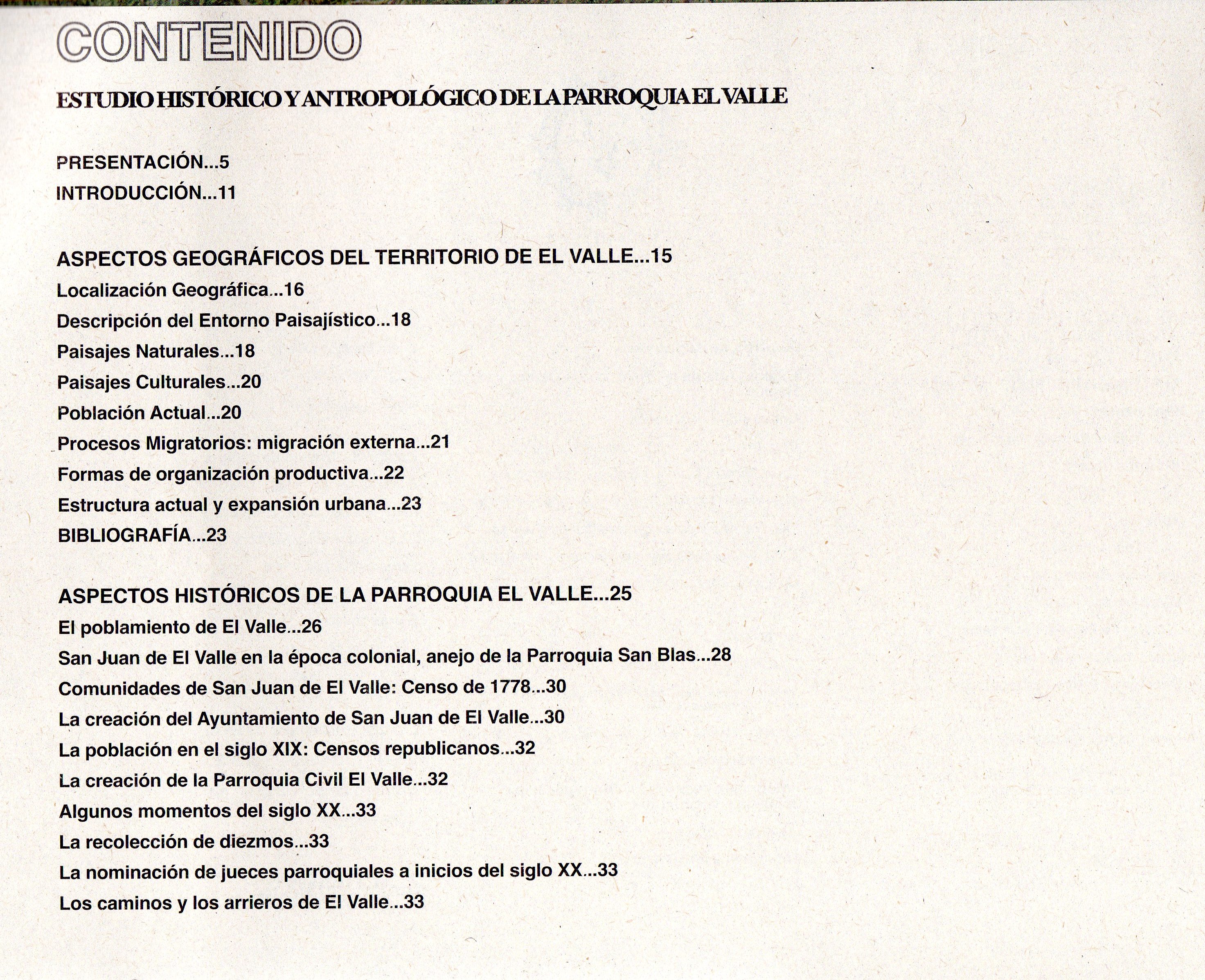 TÃtulo : El Valle mi pueblo es como un mapa del cielo... : Estudio histórico y antropológico de la parroquia El Valle Tipo de documento: texto impreso Autores: Juan MartÃnez Borrero, Autor Editorial: Cuenca : Universidad de cuenca Fecha de publicación: 2016 Número de páginas: 168 p Il.: fotografÃas, map. Dimensiones: 20.5x29.5 cm ISBN/ISSN/DL: 978994220653 Nota general: Incluye: Contenido, Biblografía, Glosario. Idioma : Español Clasificación: Historia del Ecuador Palabras clave: HISTORIA, EL VALLE, AZUAY, POBLACION, MIGRACION, RITOS, RELIGION, COMIDA TRADICIONAL, CULTURA. Clasificación: 986.6 Ecuador Nota de contenido: Aspectos geográficos del territorio de el Valle.-- Aspectos históricos de la parroquia El Valle.-- Historia de las comunidades de El Valle.-- Aspectos antropológicos-Etnográficos de El Valle. Link: https://catalogo.bibliolatino.com/uemo/opac_css/index.php?lvl=notice_display&id= Reserva