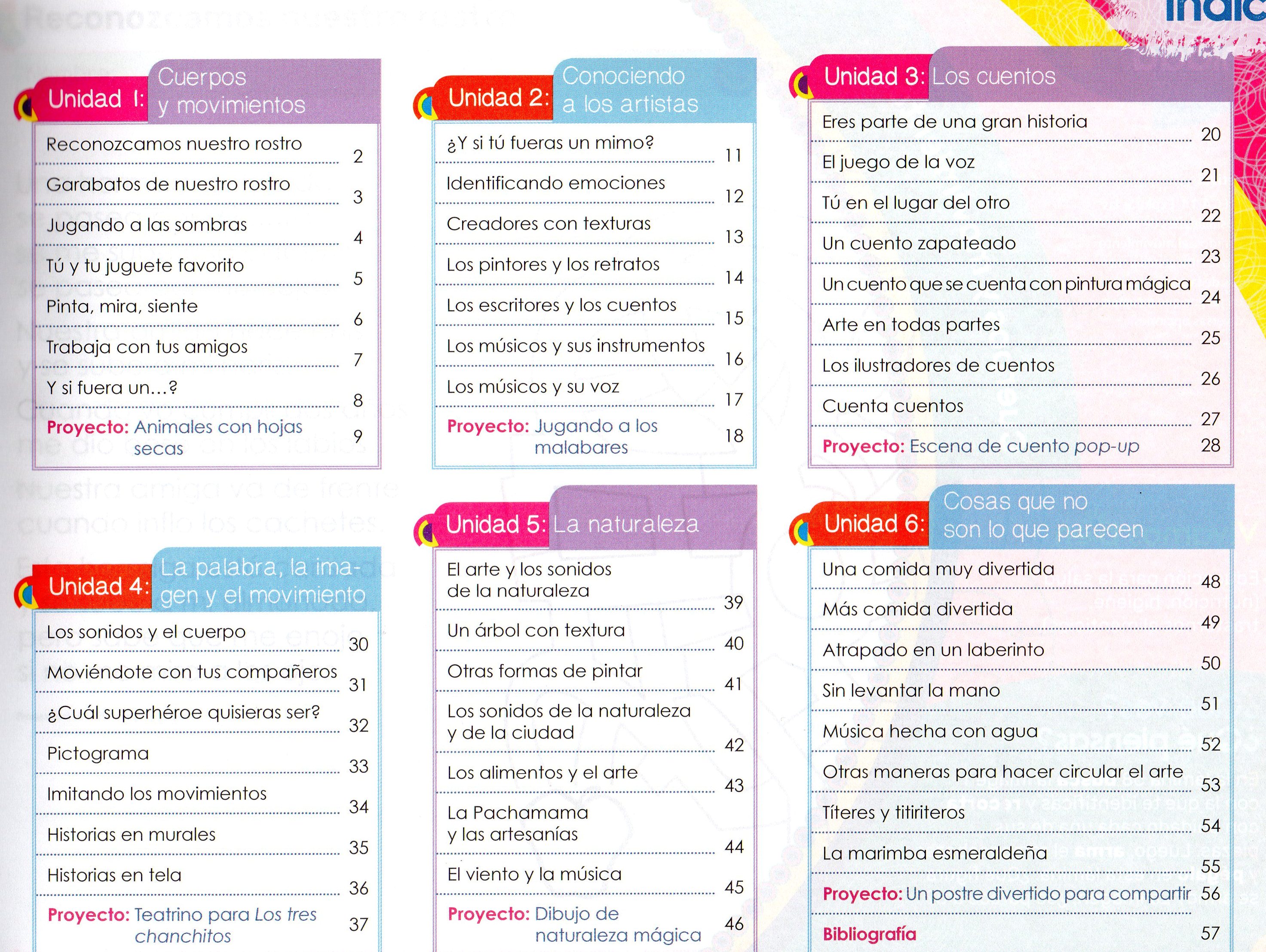 TÃtulo : Desempeños y expresiones 3er. año : Texto de Educación cultural y artÃstica para tercer año de EGB Tipo de documento: texto impreso Autores: Susan Rocha RamÃrez, Autor Editorial: EDINUN Ediciones Fecha de publicación: 2017 Número de páginas: 67 p. Il.: il. Dimensiones: 20.5x28 cm ISBN/ISSN/DL: 978-9978-48-506-4 Nota general: Incluye: Indice, Recortables. Idioma : Español Clasificación: Las artes Palabras clave: EXPRESION CORPORAL, SENTIDOS, PATRIMONIO, COREOGRAFIAS, ARTE, JUEGOS Clasificación: 700 Las artes. Bellas artes y artes decorativas Nota de contenido: Tu identidad.-- Expresiones con el cuerpo.-- Algo diferente.-- Desarrollando los sentidos.-- Objetos de tu entorno.-- Viviendas.-- Las posibilidades del cuerpo.-- El cuerpo.-- Arte, patrimonio y naturaleza.-- Creaciones con texturas naturales.-- Lo que te gusta.-- Juegos sensoriales. Link: https://catalogo.bibliolatino.com/uemo/opac_css/index.php?lvl=notice_display&id= Reserva
