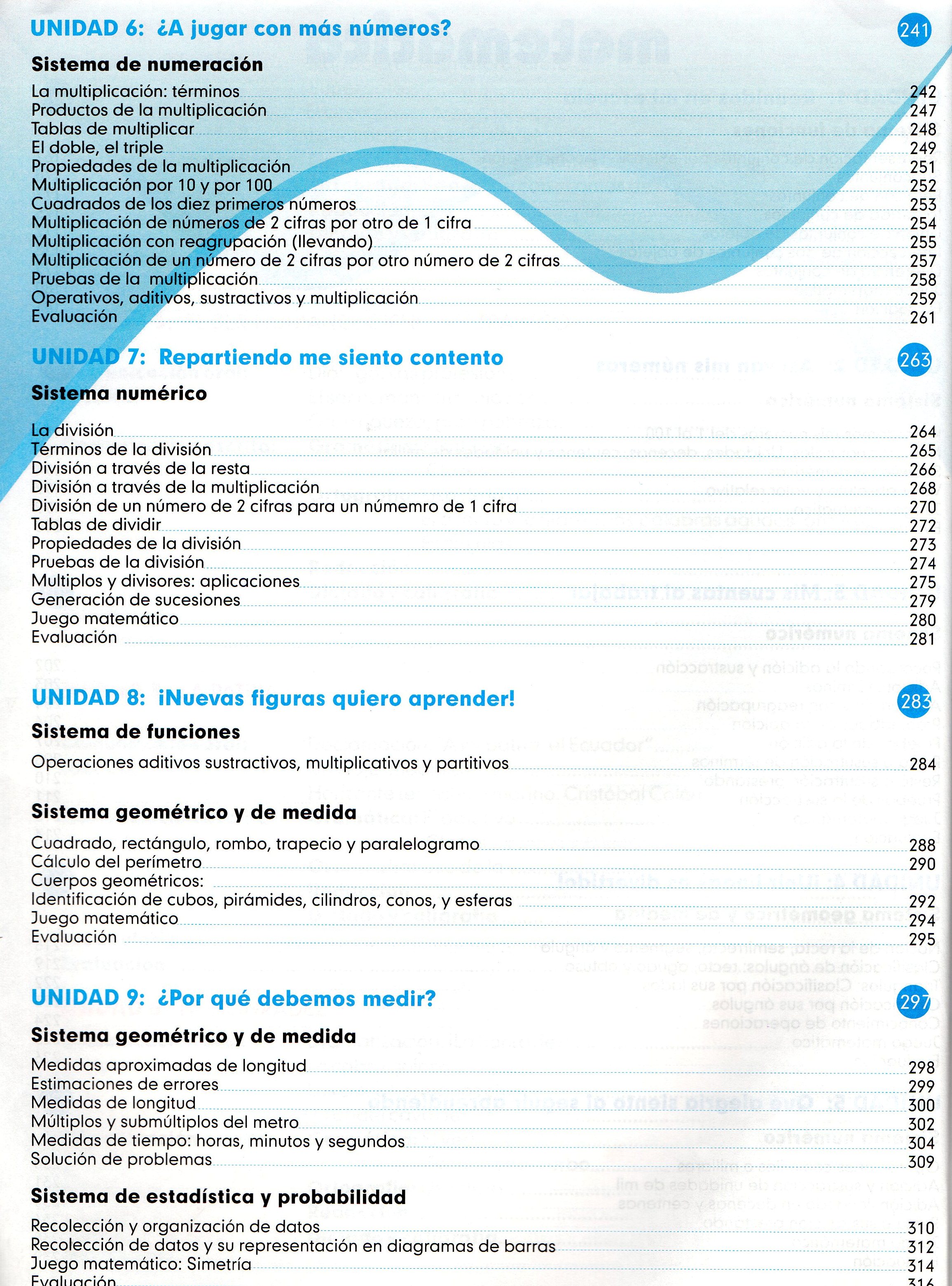 TÃtulo : Dejando Huellas 3 Lenguaje y Comunicación, Matemática, Entorno Natural y Social : GuÃa para el Docente Tipo de documento: texto impreso Autores: Luis H. Calderón, Autor Editorial: Prolipa CÃa. Ltda. Fecha de publicación: 2009 Número de páginas: 456 p Il.: il. Dimensiones: 28x21cm ISBN/ISSN/DL: 978-9978-47-025-1 Nota general: Incluye: Contenidos. Idioma : Español Clasificación: Educación Primaria Palabras clave: EDUCACION, LENGUAJE, MATEMATICAS, CIENCIAS NATURALES, ESTUDIOS SOCIALES. Clasificación: 372.24 Educación, Niveles específicos de escuela primaria Nota de contenido: Lectura: La hitoria de Yalo.-- La comunicación.-- Rimas y Poemas.-- El alfabeto.-- Uso de las mayúsculas.-- La tragedia de la pulga.-- La narración.-- El nombre o sustantivo.-- Palabras polisémicas.-- Poema.-- Ubicación de las sílabas.-- Signos de interrogación.-- Normas de educación.-- El cuento.-- El artículo.-- El género del sustantivo.-- El número.-- Palabras homófonas.-- El diptongo.-- Valoremos nuestros juegos.-- Poemas para el alma.-- El gatito con botas.-- La noticia.-- Expresión oral y escrita.-- Los acrósticos.-- El verbo.-- Usos de la c.-- El valor de la solidaridad.-- Seamos honestos.-- La leyenda. El gallo de la catedral.-- Los sufijos.-- La oración gramatical.-- Sujeto y predicado.-- Uso de y y ll.-- Sistema numérico.-- Unidades y decenas.-- Sistema de funciones.-- Sistema geométrico y de medida.-- Números ordinales.-- Subconjuntos.-- Líneas rectas y curvas.-- Perímetros y áreas.-- La multiplicación.-- Unión de conjuntos.-- Medidas de longitud.-- La puntualidad.-- Medidas de tiempo.-- El ahorro.-- División y multiplicación.-- Unidades monetarias.-- Entorno natural y social.-- Etapas de la vida.-- El cuerpo humano.-- Mi familia.-- Derechos y obligaciones de los miembros de la familia.-- Mi escuelita.-- Fiesta de la naturaleza.-- Las plantas.-- Clasificación de los animales.-- Metamorfosis de la mariposa.-- El agua.-- El aire.-- El Sol.-- El planeta Tierra.-- Así es mi comunidad.-- La Policía.-- El semáforo.-- Medios de transporte.-- Empleados públicos.-- Los Bomberos.-- La Defensa Civil.-- Ecuador.-- La Costa, Sierra, Región Amazónica, Región Insular o Galápagos.-- Símbolos de la Patria. Link: https://catalogo.bibliolatino.com/uemo/opac_css/index.php?lvl=notice_display&id= Reserva