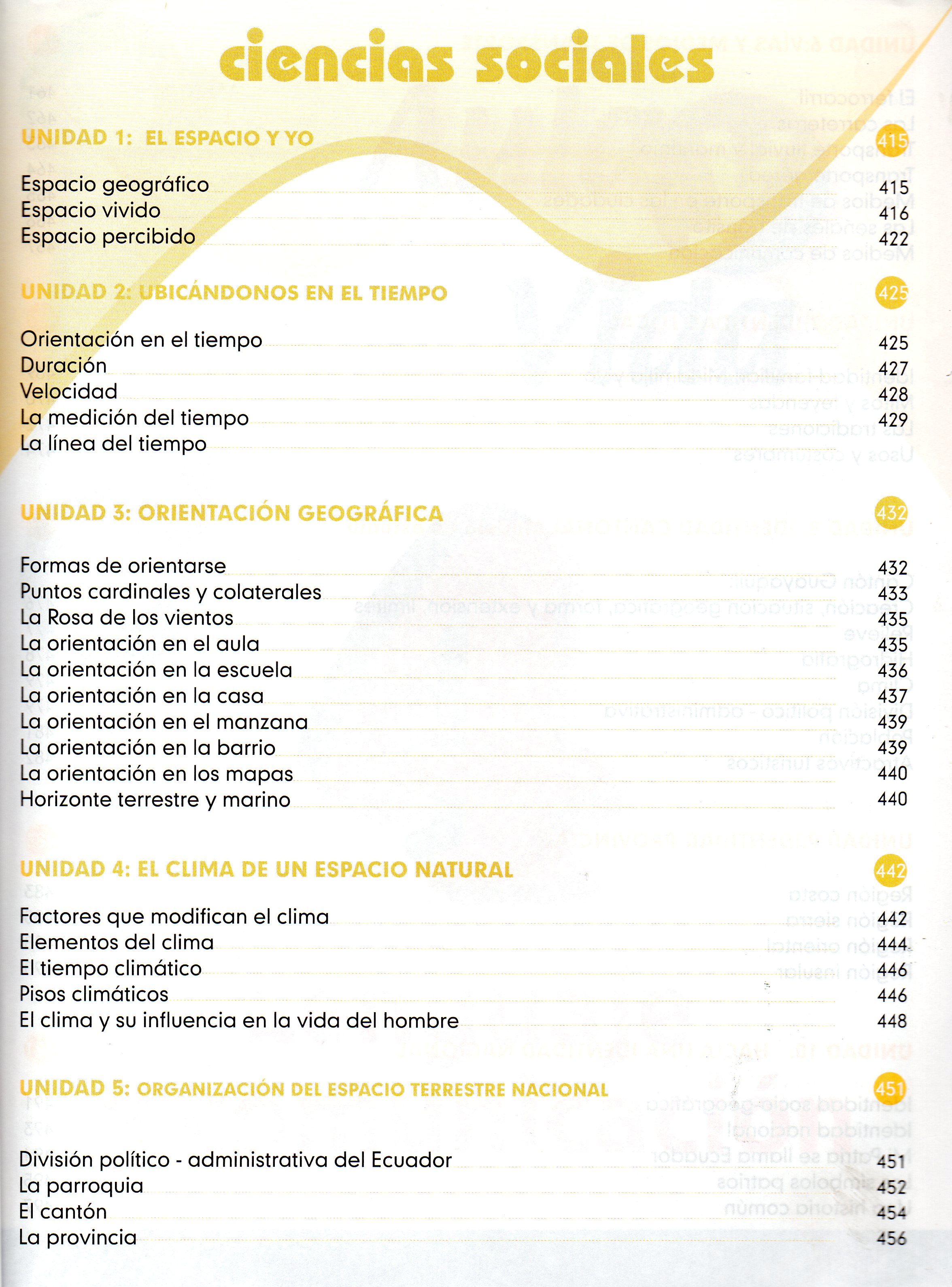 TÃtulo : Dejando Huellas 4 Bimateria. Ciencias Naturales, Estudios Sociales Tipo de documento: texto impreso Autores: Luis H. Calderón, Autor Mención de edición: 1a ed. Editorial: Prolipa CÃa. Ltda. Fecha de publicación: 2011 Número de páginas: 328 p Il.: il. Dimensiones: 28x21cm ISBN/ISSN/DL: 978-9978-47-237-8 Nota general: Incluye: Evaluación diagnóstica, Pruebas de selección múltiple, Símbolos patrios. Idioma : Español Clasificación: Educación Primaria Palabras clave: EDUCACION, CIENCIAS NATURALES, ESTUDIOS SOCIALES, EL SOL, AGUA, LA TIERRA, EL AIRE, CLIMA, LAS PLANTAS, ECOSISTEMA, EL SER HUMANO, Clasificación: 372.24 Educación, Niveles específicos de escuela primaria Nota de contenido: Energía, vida y armonía.-- El suelo y sus irregularidades.-- El agua me da vida.-- El clima y sus cambios.-- Los cambios en la naturaleza.-- El mundo en que vivimos.-- La tierra ecuatoriana.-- La gente ecuatoriana.-- Soy ciudadano ecuatoriano.-- Mi provincia.-- Organización de mi provincia. Link: https://catalogo.bibliolatino.com/uemo/opac_css/index.php?lvl=notice_display&id= Reserva