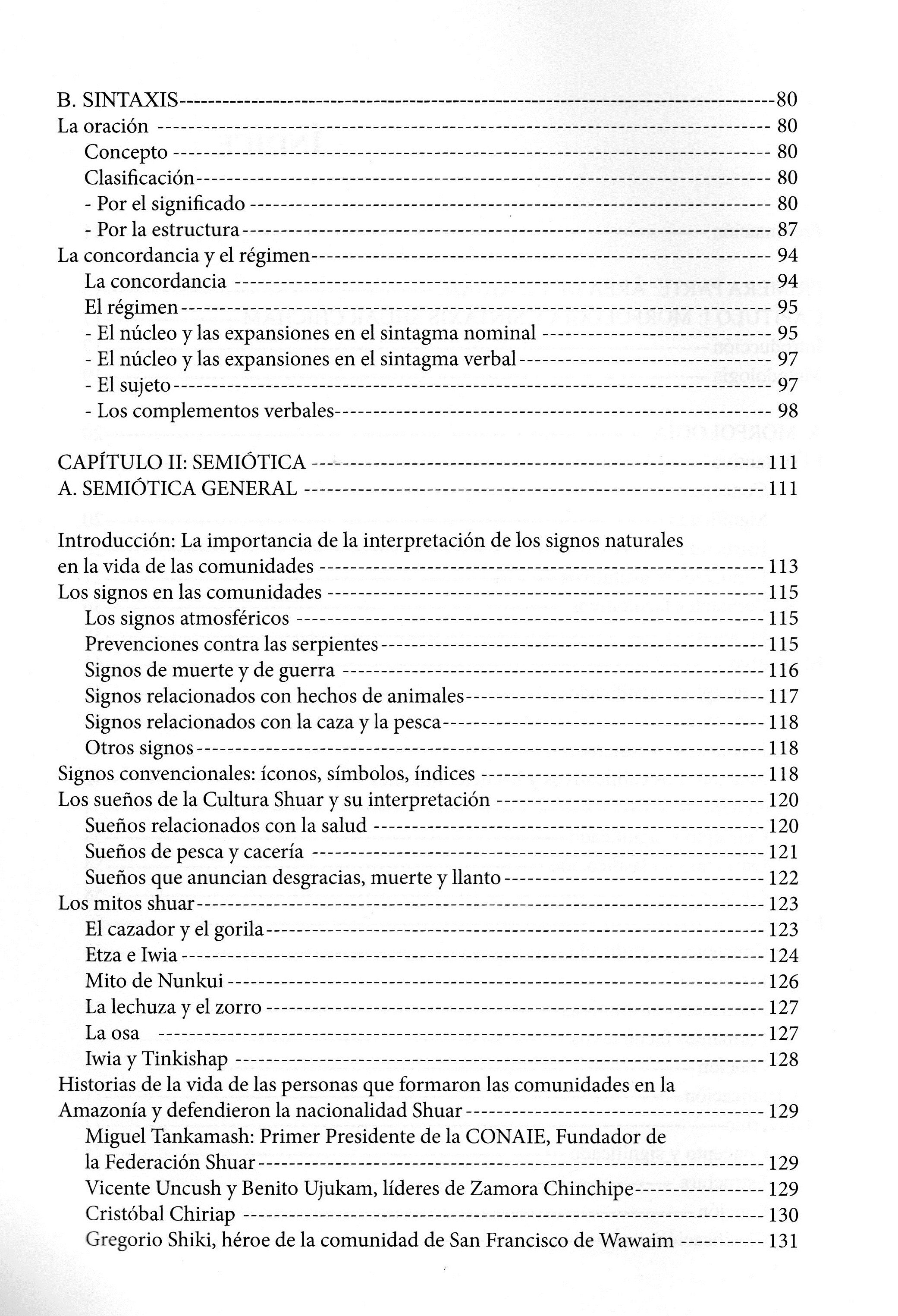 TÃtulo de serie: Serie SabidurÃa Amazónica, tomo I TÃtulo : SabidurÃa de la cultura shuar de la amazonia ecuatoriana Tipo de documento: texto impreso Autores: Nampir Livia Chiriap Tsenkush, Autor ; Luzmila Jimbiquiti Puenchera, Autor ; Octavio Kayap Atsut, Autor ; ElÃas Marino Kuja Jimpikit, Autor ; Juan Manuel Mashinkiash Chinkiad, Autor ; Pedro Alfredo Mashu Nankitiai, Autor ; Nuserik Guillermina Sharup Tseremp, Autor ; Raúl Ernán Shiki Yankur, Autor ; Edi Mauricio Timias Sando, Autor ; Imaculada de la Nube Tsunki Yampis, Autor ; Ruth Esthela Yampik Kajekai, Autor Mención de edición: 1a ed Editorial: Universidad de Cuenca Fecha de publicación: 2012 Colección: Serie SabidurÃa Amazónica num. Vol. 2 Número de páginas: 248 p Il.: fotografÃas, tbls. Dimensiones: 30x21 cm ISBN/ISSN/DL: 978-9978-14-000-0 Nota general: Incluye: Indice, Mapa de diversidad cultural, Bibliografía, Fuentes orales. Idioma : Español Clasificación: Lengua nativas sudamericanas Palabras clave: FONOLOGIA, MORFOLOGIA, CULTURA SHUAR. Clasificación: 498.372 Lengua Shuar Link: https://catalogo.bibliolatino.com/uemo/opac_css/index.php?lvl=notice_display&id= Reserva