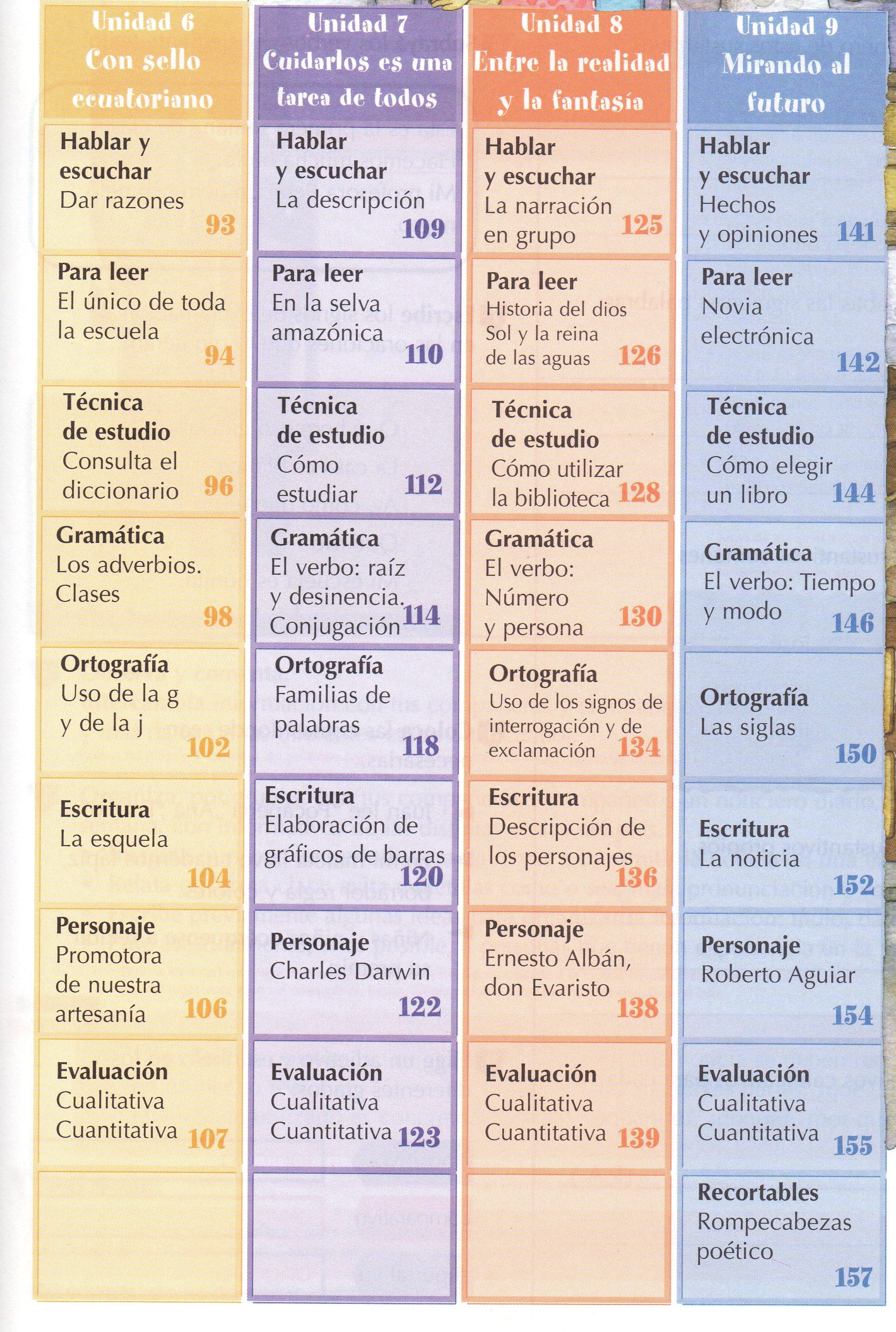 TÃtulo : Lenguaje y Comunicación 6. Edición para el docente Tipo de documento: texto impreso Autores: Martha Alvarado Aillón, Autor Fecha de publicación: 2001 Número de páginas: 168 p. Il.: il. Dimensiones: 27.5X21cm. ISBN/ISSN/DL: 978-9978-07-265-3 Nota general: Incluye: Guía metodológica, Microplanificación, Indice, Poemas Idioma : Español Clasificación: LinguÃstica Palabras clave: GRAMATICA, ORTOGRAFIA, EDUCACION, LINGUISTICA, ESCRITURA, TECNICA DE ESTUDIO, BIBLIOTECA. Clasificación: 440 Frances Nota de contenido: Hablar y escuchar.-- Para leer.-- Técnica de estudio.-- Gramática.-- Ortografía.-- Escritura.-- Personaje.-- Evaluación. Link: https://catalogo.bibliolatino.com/uemo/opac_css/index.php?lvl=notice_display&id= Reserva