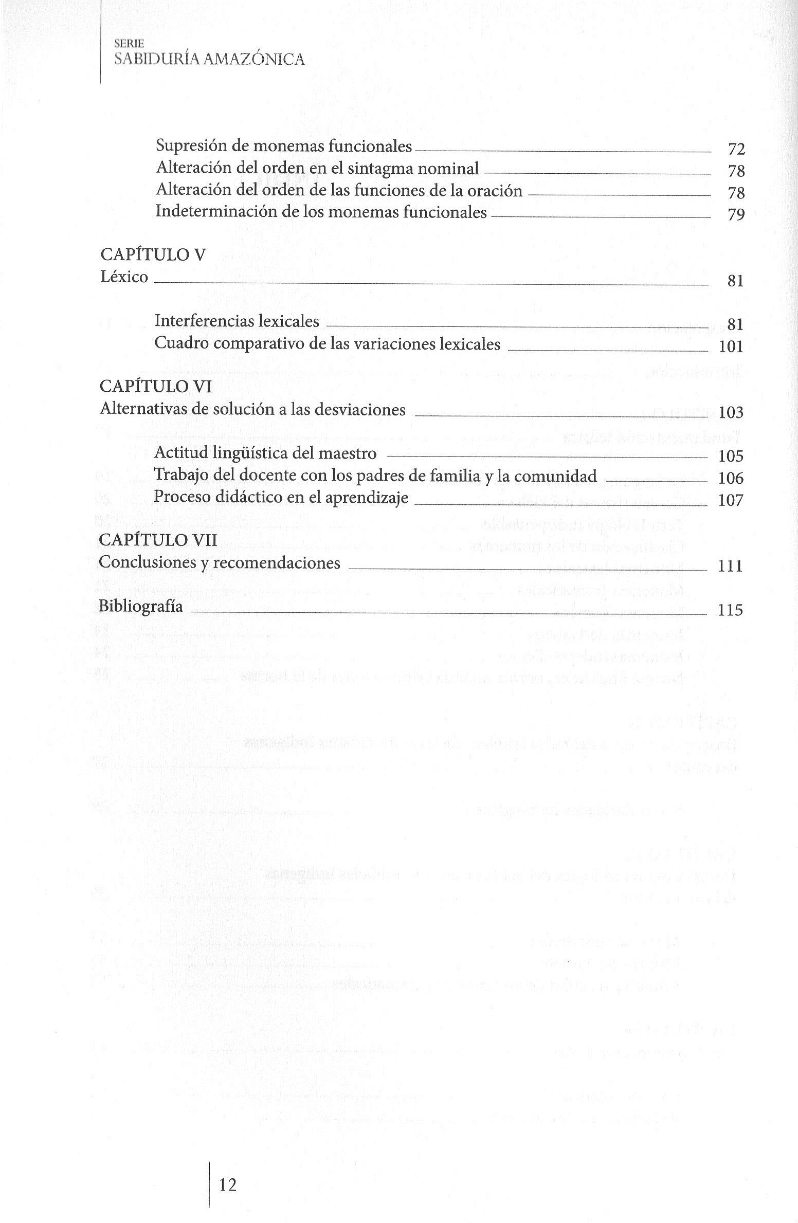 | Resumen: | Es una serie de textos producidos por los alumnos de la Licenciatura en Ciencias de la Educación e Investigación de las Culturas Amazónicas de la Facultad de FilosofÃa, Letras y Ciencias de la Educación en el marco del convenio firmado entre la Universidad de Cuenca, la Dirección Nacional de Educación Bilingüe (DINEIB) y el Fondo de Naciones Unidas para la Infancia (UNICEF). Esta serie comprende los siguientes tÃtulos: 1. SabidurÃa de la Cultura Kichwa de la Amazonia Ecuatoriana 2. SabidurÃa de la Cultura Shuar de la Amazonia Ecuatoriana 3. SabidurÃa de la Cultura Waodani de la Amazonia Ecuatoriana 4. SabidurÃa de la Cultura Sapara de la Amazonia Ecuatoriana 5. Visión Funcional de la Lengua Shuar 6. Desviaciones de la norma estándar en el habla kichwa de las comunidades indÃgenas del Cantón Tena. 7. Los modelos de desarrollo. Su repercusión en las prácticas culturales de construcción y del manejo del espacio en la cultura kichwa amazónica. Un análisis comparativo del desarrollo lineal en relación con el sumak kawsay. 8. Etnoeducación Shuar y Aplicación del Modelo de Educación Intercultural Bilingüe en la Nacionalidad Shuar. 9. Gramática de la Lengua Waodani para Nivel Básico 10. Gramática de la Lengua Sapara para Nivel Básico La investigación aplicada a la educación Intercultural Bilingüe Amazónica se vigoriza con estas publicaciones cuyo principal objetivo ha sido y es proporcionar un valioso insumo para el desarrollo curricular de las culturas Kichwa, Shuar, Waodani y Sapara, asà como para la elaboración de materiales educativos y la formación de docentes de estas nacionalidades de nuestro paÃs. |