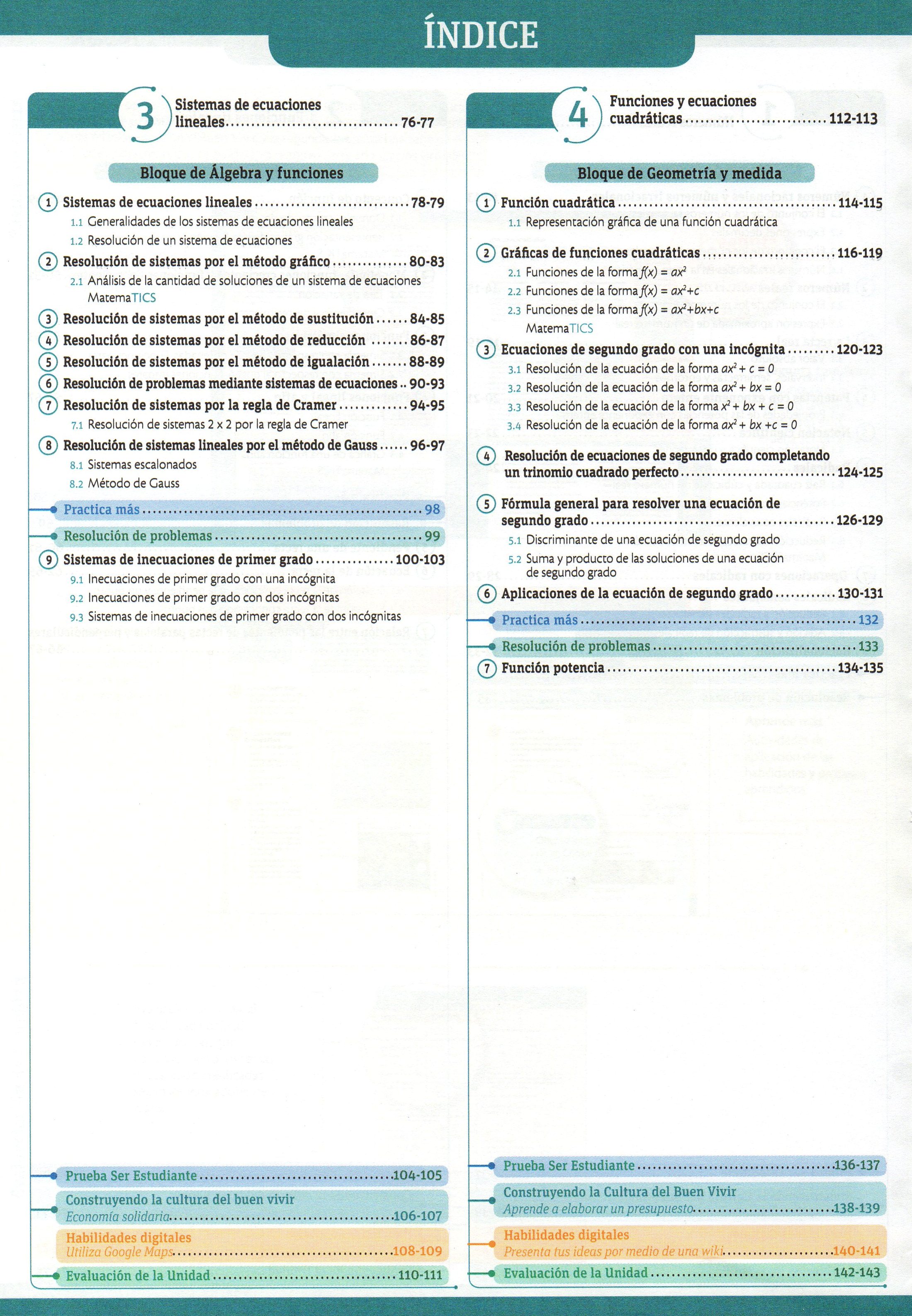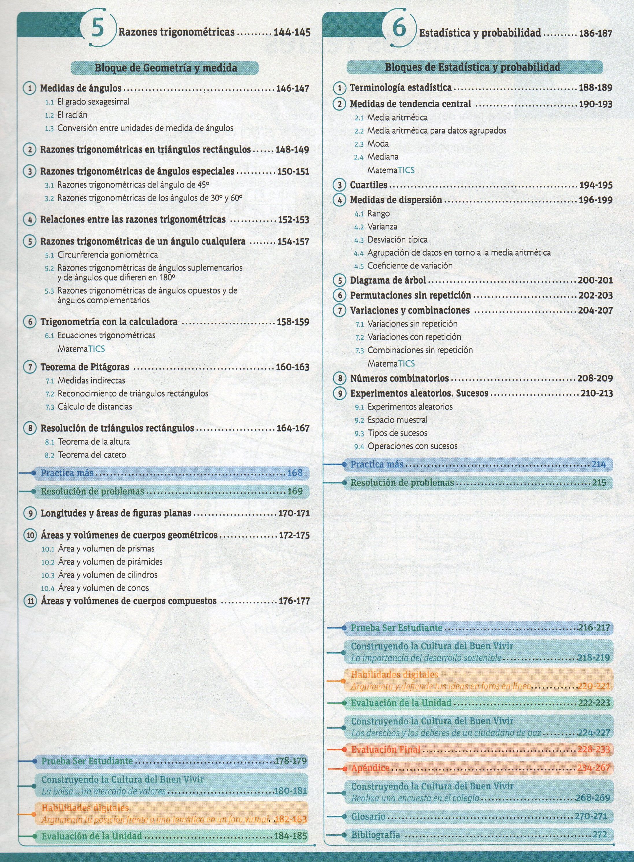TÃtulo de serie: Applica TÃtulo : Matemática 10 : GuÃa del docente Tipo de documento: texto impreso Autores: Mario Cueva, Autor Editorial: SM ECUAEDICIONES Fecha de publicación: 2016 Número de páginas: 272 p Il.: il. Dimensiones: 28x21cm Nota general: Incluye: Indice, Taller de habilidades, Evaluación, Glosario, Bibliografía, Webgrafía, Planificaciones microcurriculares. Idioma : Español Clasificación: Matemáticas Palabras clave: MATEMATICAS, NUMEROS, ALGEBRA Y FUNCIONES, GEOMETRIA Y MEDIDA, ESTADISTICA, PROBABILIDAD. Clasificación: 510 Matemáticas Nota de contenido: Números reales.-- Funciones lineales.-- Sistemas de ecuaciones lineales.-- Funciones y ecuaciones cuadráticas.-- Razones trigonométricas.-- Estadística y probabilidad. Link: https://catalogo.bibliolatino.com/uemo/opac_css/index.php?lvl=notice_display&id= Reserva