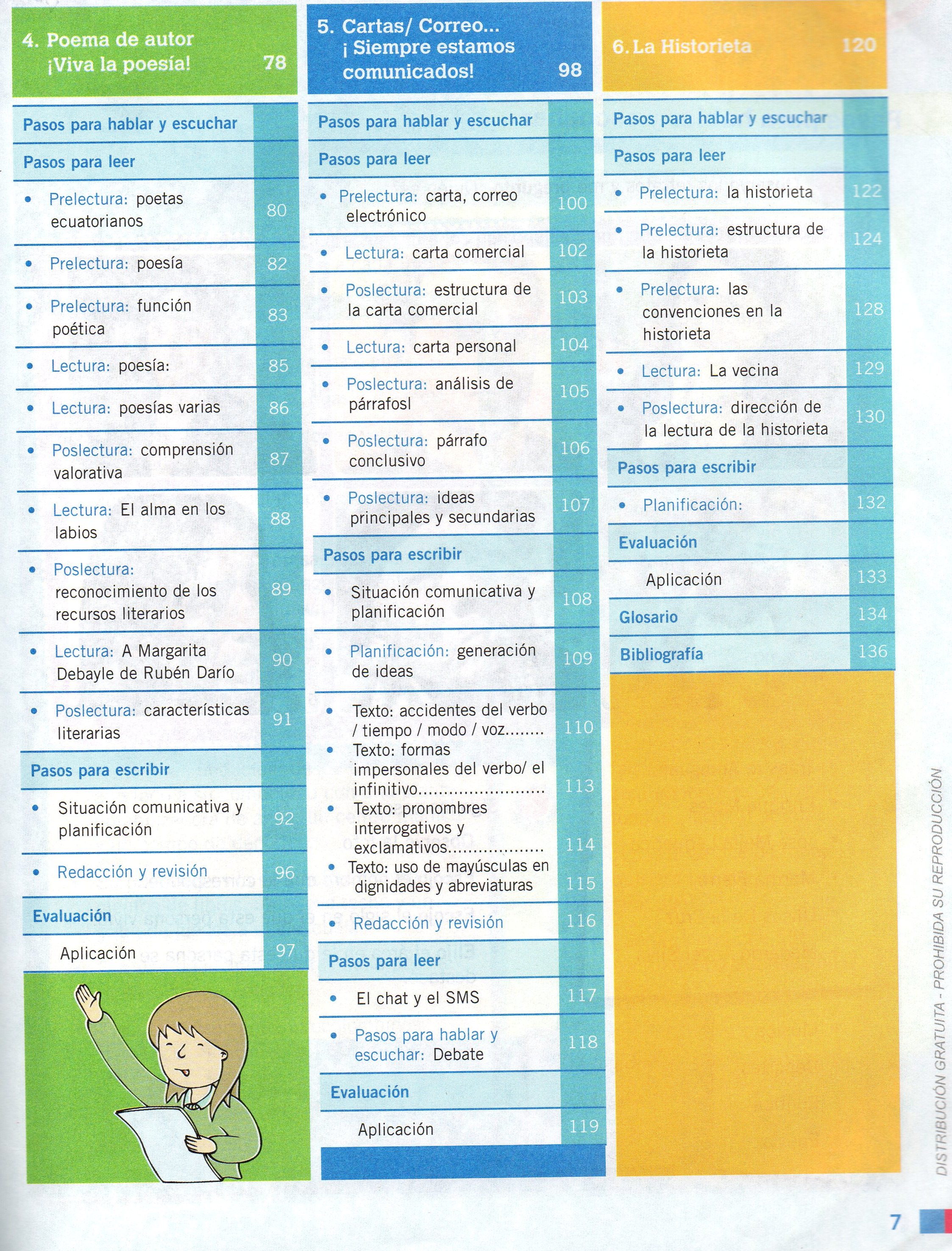 TÃtulo : Lengua y Literatura 7. Texto para estudiantes Tipo de documento: texto impreso Autores: Soledad Mena, Autor Mención de edición: 1a ed Editorial: Quito : Ministerio de Educación, Cultura y Deportes Fecha de publicación: 2010 Número de páginas: 136 p Il.: il. Dimensiones: 28x21cm ISBN/ISSN/DL: 978-9978-19-423-2 Nota general: Incluye: Contenido, Evaluación, Glosario, Bibliografía. Idioma : Español Clasificación: LinguÃstica Palabras clave: EDUCACION, LENGUAJE, ESCRITURA, POESIA, DEBATE, ABDON CALDERON, ANOCHE CUANDO DORMIA, AUTORES ECUATORIANOS, Clasificación: 410 Linguística Nota de contenido: Biografía y autobiografía.-- Leyendas literarias.-- Folletos.-- Poema de autor.-- Cartas, Correo.-- La Historieta. Link: https://catalogo.bibliolatino.com/uemo/opac_css/index.php?lvl=notice_display&id= Reserva